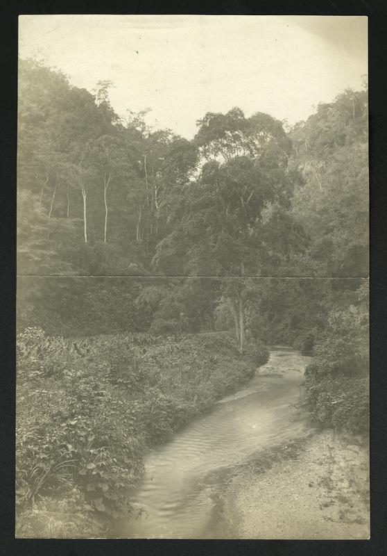 Views (2 photos) "on the Bolivian [railroad?]" (written on verso); one a view of a stream, the other of a small bridge
