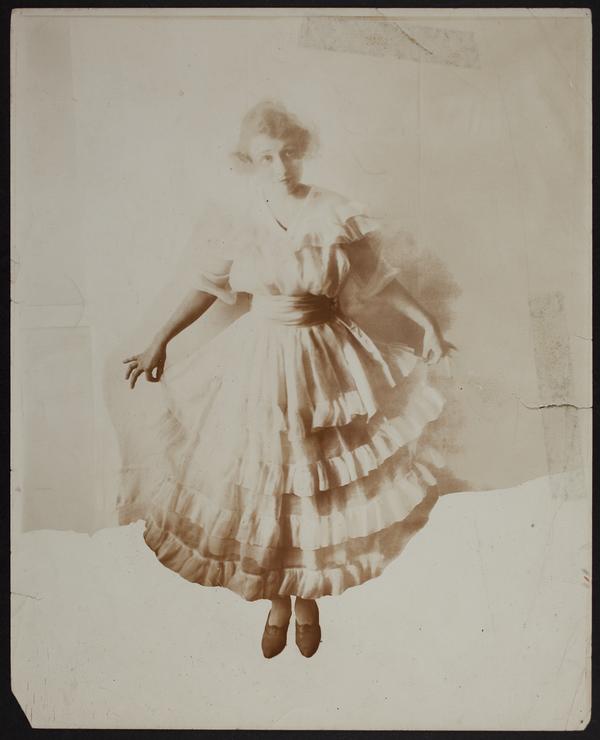 Photo of Peggy in a frilly dress with sash and tiers