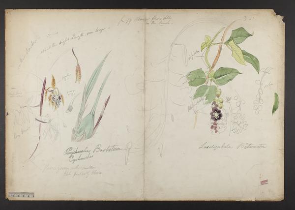 botanical: Cycnoches barbatum; Lardizabala biternata