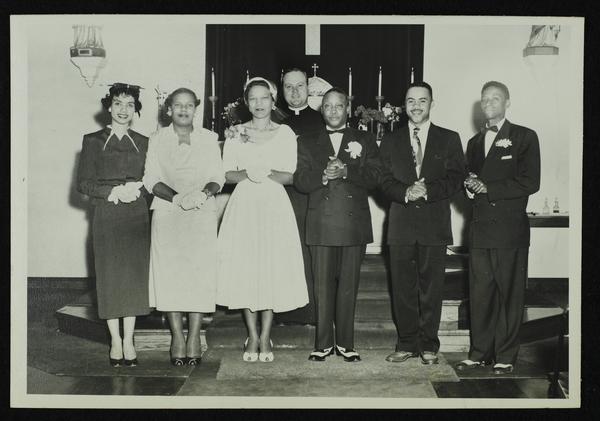 ? Loyed and Unidentified bride wedding at St. Peter Claver Church (b/w)