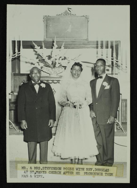 ? Stevenson and Unidentified bride wedding at St. Mary's Church, n.d. (b/w