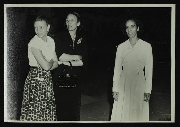 Rosie Hughes and two unidentified women standing outside