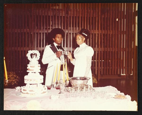 Earnest[?] Morks[?] and Judy Phillips wedding at Claver Center