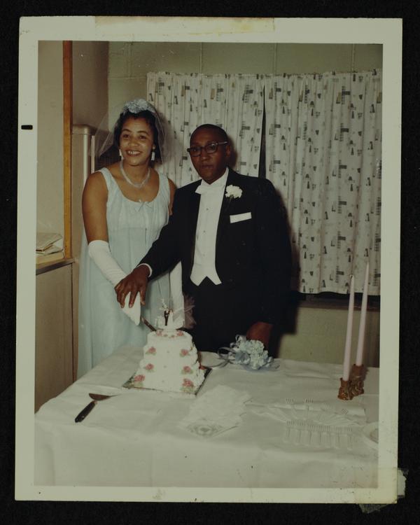 Unidentified groom [Rev. Gordner?] and Zelma Cypher wedding at St. James Church, 10 February 196