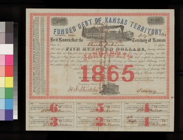 Certificate, Funded Debt of Kansas Territory
