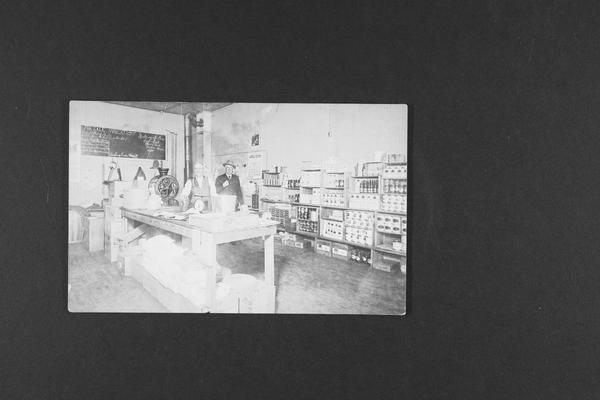 Albert Weber in his Store at Exeter, Nebraska