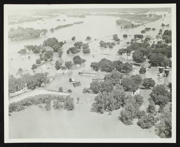Aerial view looking northwest from intersection of US-24/40 and US-59 (1951 Flood)