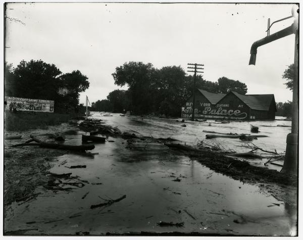 High water in street near The Palace store (1903 Flood)