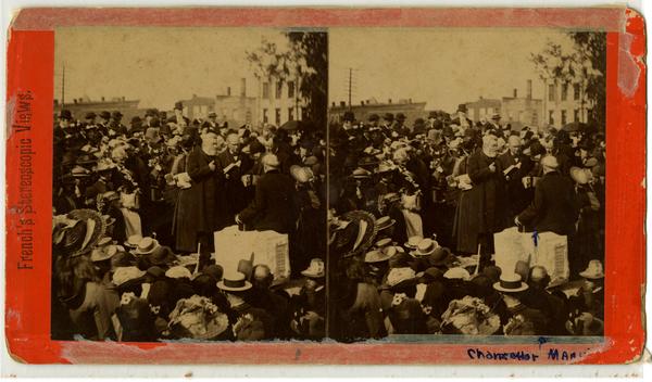 Cornerstone laying, United Methodist Church, 946 Vermont Street, with Chancellor Marvin in ceremony