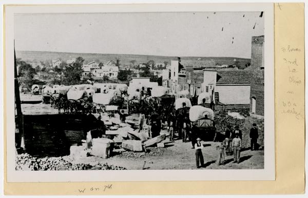 Looking west on 7th Street with covered wagons