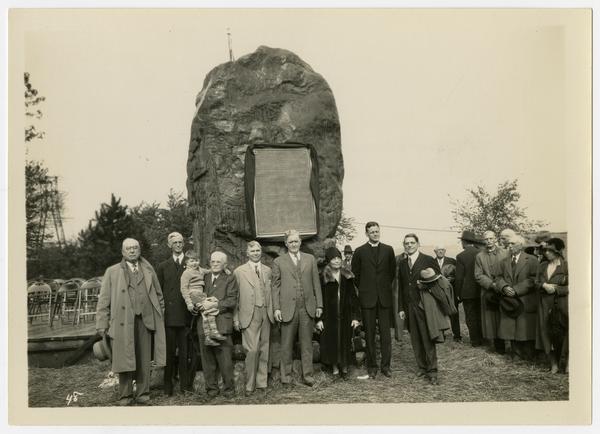 Dedication of pioneer boulder monument