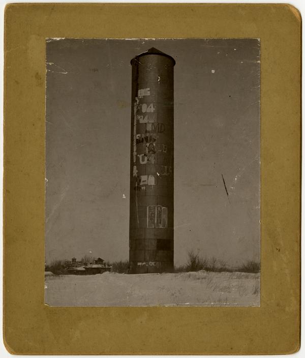 Old city water tower with graffiti on north hill of Mount Oread