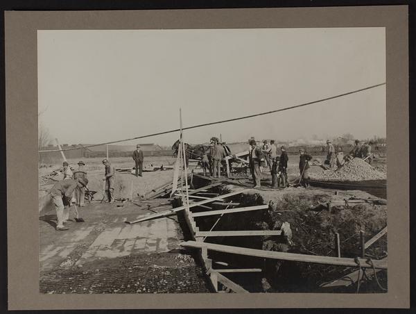 Concrete gang working on septic tank