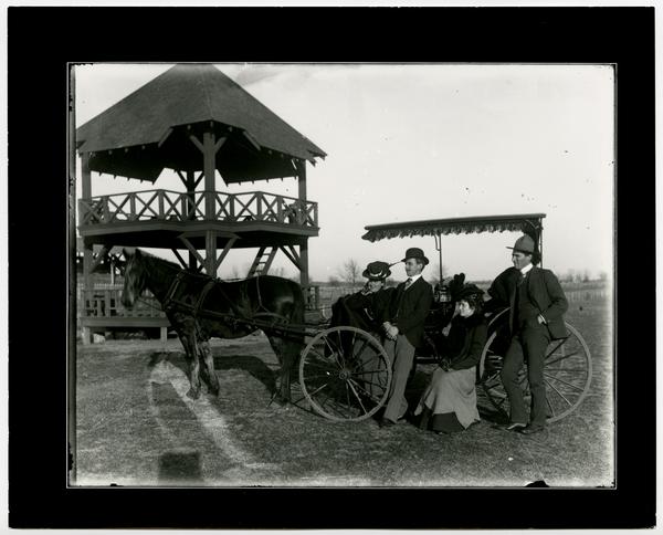 Bismark Grove- Four People With Buggy by Gazebo