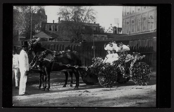 Children in carriage decorated for parade