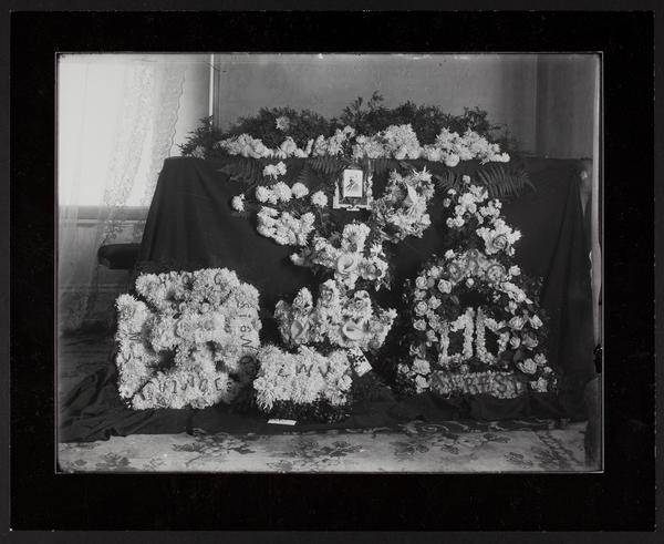 Flower draped casket