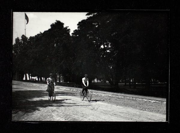 Man and woman bicycling