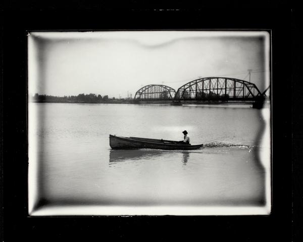 Bridge and man in boat