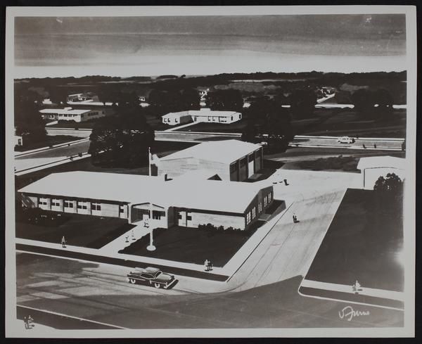 Army Reserve Building Architects drawing of proposed building for Lawrence.