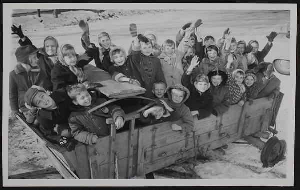 Lawrence Schools - East Heights - Second graders ride in makeshift sled.