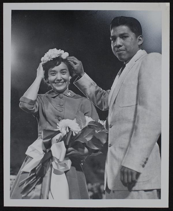 Haskell Football - Homecoming Queen - Arleen Teeple, Baroga, Mich. and Ezra Anna.