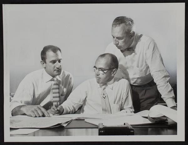 Journal World - Audit of Circulation figures - (L to R) William Metier, [circulation] manager; James R. Kelly, agent of Audit Bureau; Ernest Pontius, advertising director.