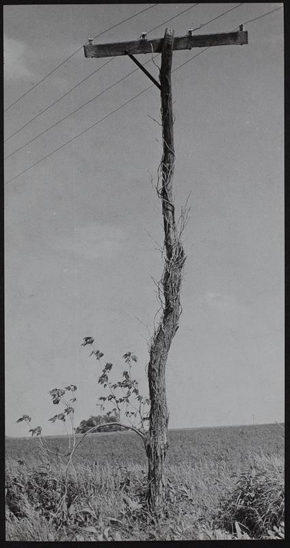 Vinland - vine growing on utility pole 1/2 mile west of Vinland.