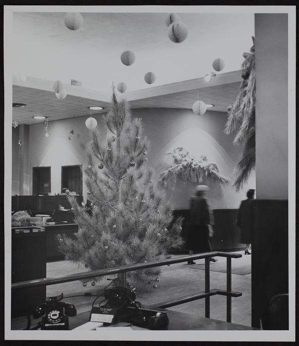 Christmas decorations at Lawrence National Bank.