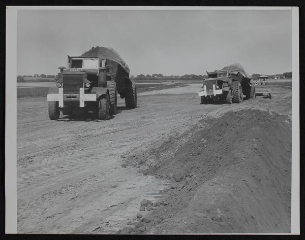 Kansas Turnpike Earth movers hauling 23 cubic yards per load.