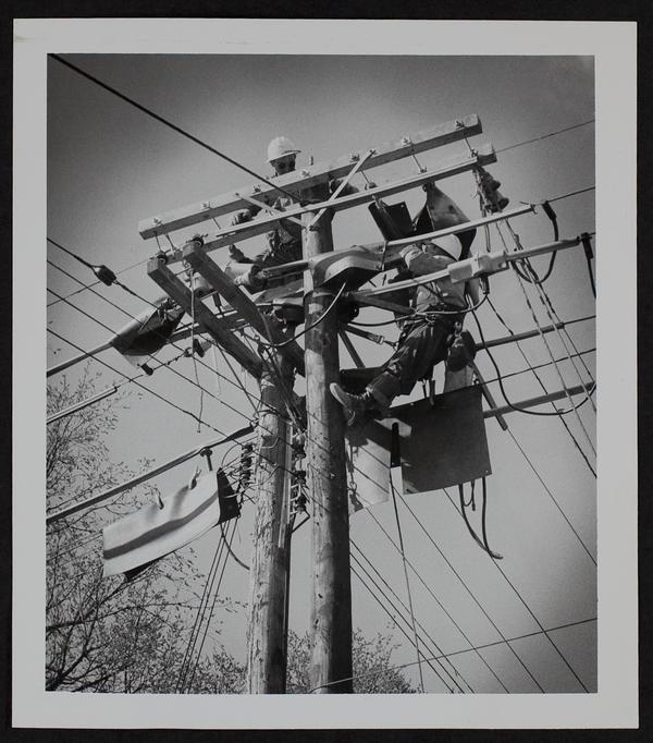 Kansas Power & Light changing insulators in east Lawrence.