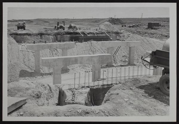 Kansas Turnpike - Construction of archways to carry turnpike over secondary roads west of Lawrence.