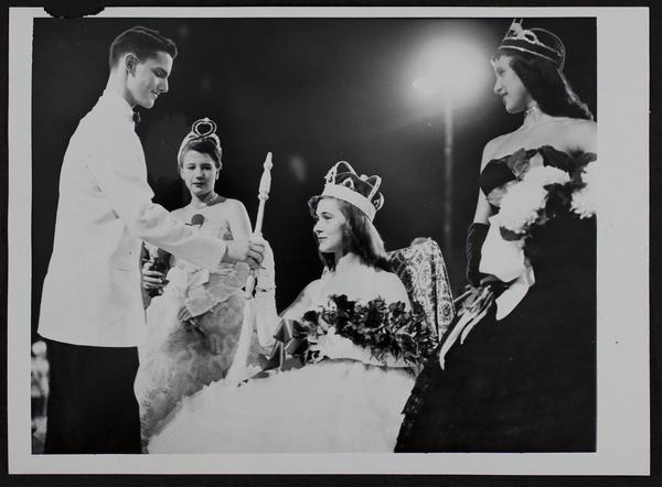 LHS Homecoming Queen Barbara Hodgson and Alan Coombs; Penny Jones (left) and Sharon Zimmerman.