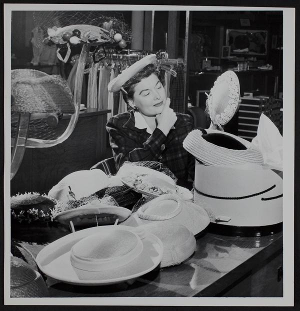 Women's styles - Mrs. Keith Young - choosing a hat.