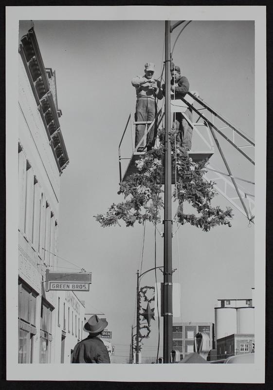 Christmas lamppost decorations.