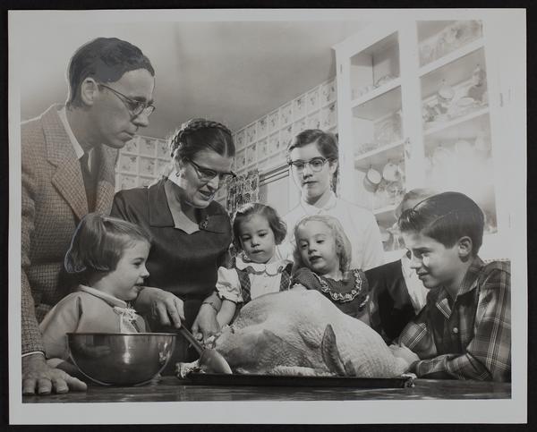 Thanksgiving - G. Baley Price Family (L to R) Mr. Price; Edwina; Mrs. Price; Doris; Diane; Cora Lee (standing); Lucy; Griffith.
