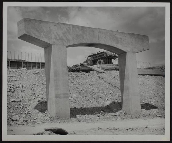 Kansas Turnpike - Construction of archways to carry turnpike over secondary roads west of Lawrence.
