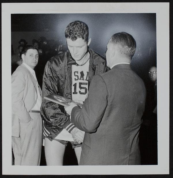 Tom Gola of LaSalle and Dutch Lonberg (with back to Camera).