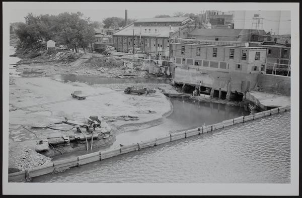 Kaw River - Low Water allows repairs to be made to Bowersock plant at right.