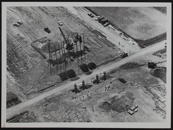 Kansas Turnpike - construction of overpass northeast of Lawrence.