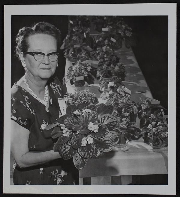 Flowers - African violet show - Mrs. J. A. Dove with display.