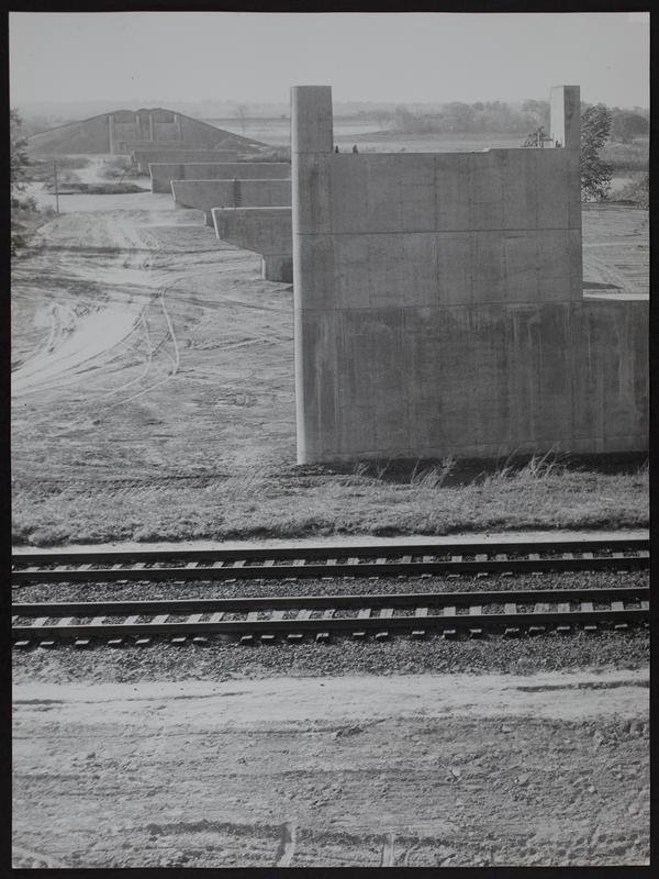 KS Turnpike - Fisher Memorial Bridge view NW over Union Pacific tracks and river completed pier.