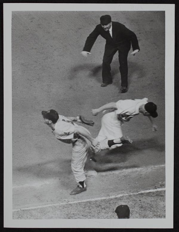 KC Baseball (L to R) Joe Altobelli (Cleveland); KC's Jim Finigan; umpire not ident.