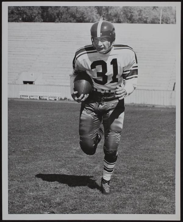 KU Football - Washington state players. A. Cougar Mascot Butch IV. B. Vaughn Hitchcock. C. Tom Gunnari. D. Bob Iverson. E. Gerald Brockey. F. Jim Hagerty.