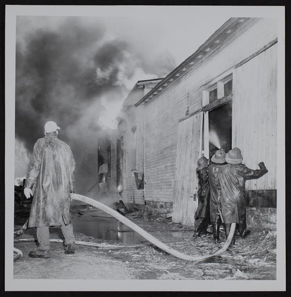 Tonganoxie Fire - Volunteer fireman attempting to save office of Dale Rawlings feed store.