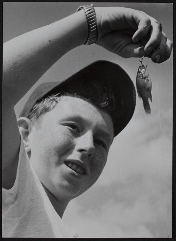 Russel Stevens, 12, son of Mr. and Mrs. Earl Stevens, rt. 2, displays his catch at the DGCO sportsman's fishing derby.