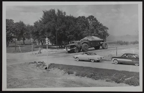 Kansas Turnpike - temporary traffic signal in north Lawrence for passage of dirt hauling machines.