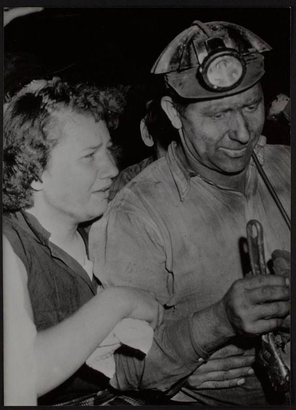 Long wait over. Tears of joy from Barbara Kovalski as her father emerges from mine, rescued from mine cave-in.