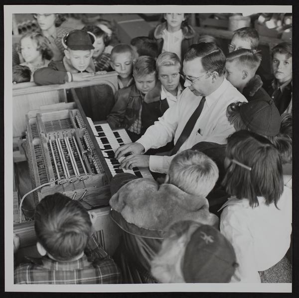 Lawrence Industry - Children at Reuter Organ Company. A - Clifford Cooper. B - Franklin Mitchell. C - Jerry Longstretch. D - Donna Mitchell. E - Darrell Guy. F - Donna Mitchell. G - Marc Carlson. H - Bobby Crown. I - Jill Perry. J - unidentified