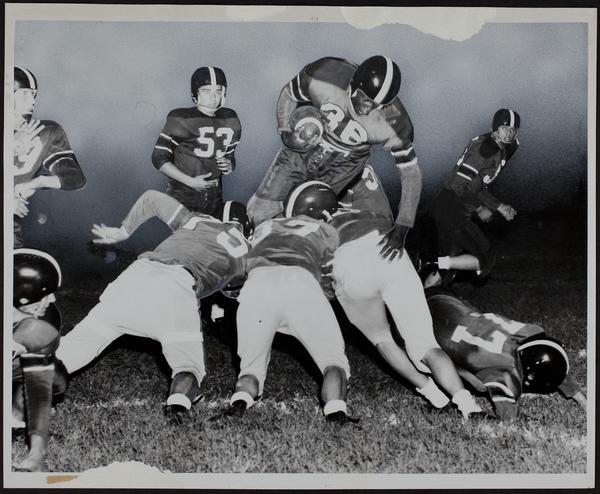 LHS Football - Junior Smith Scores against Manhattan - Don Wrench in bg.