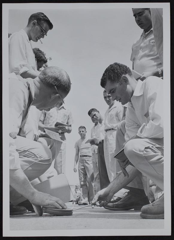 Highway Patrol - Measuring skid marks - Lee Affholder (left) and Bob Powell.